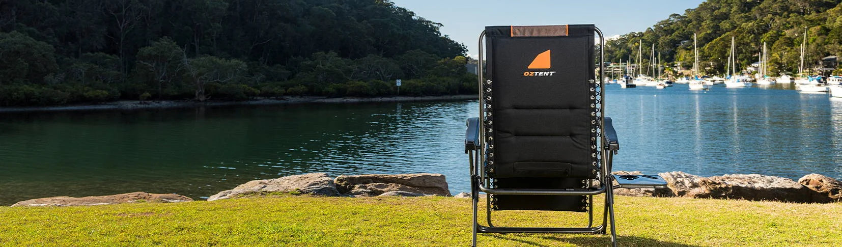 The OZTENT King Komodo HotSpot™ Chair is the ultimate in luxury camp chairs for all seasons. It boasts OZTENT’s HotSpot™ technology that allows an incredible passive heating experience for those cold days simply by slipping in your (included) HotSpot™ pouch. It is super high quality aluminium alloy construction using luxurious 600D polyester fabrics. It is fully padded and has a weight rating of 200Kg. It easily reclines and locks in any place for maximum relaxation. The pull-out side table incorporates recessed drink and phone holders.